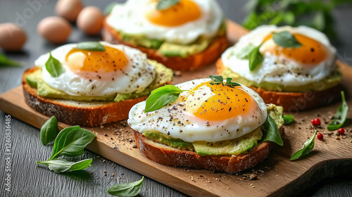 Savor Flavors of Perfestli Poached Eggs Resting Atop Fresh Avocado Toast, Beautifully Garnished