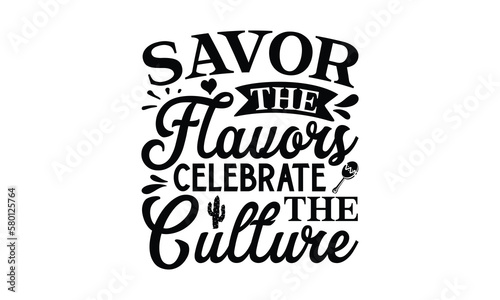 Savor the flavors, celebrate the culture, Cinco De Mayo T- shirt Design, Hand drawn lettering phrase isolated on white background, typography svg Design, posters, cards, vector sign, eps 10