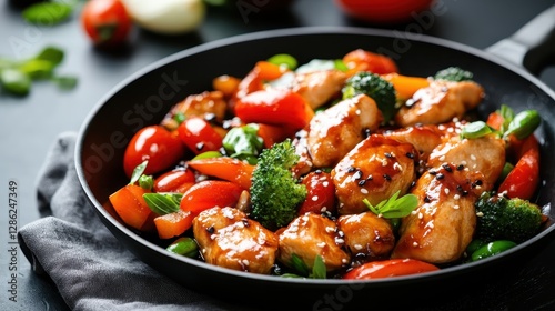 Savor the zest in this chicken and vegetable stir-fry, combining fresh flavors and quality ingredients for a delightful dining experience in minutes.