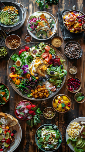 Savoring the Rainbow: An Array of Vibrant Vegan Dishes on a Rustic Table