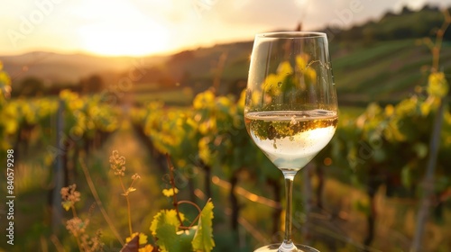 savoring viognier in picturesque vineyards at dusk lifestyle photo