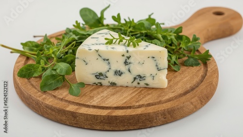 Savory blue cheese accompanied by oregano and crisp salad greens