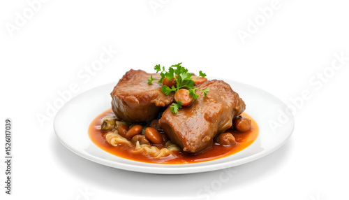 Savory braised meat dish gourmet kitchen food photography bright close-up culinary delight