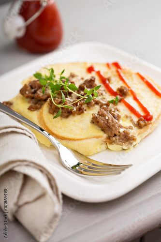 Savory french toast with egg and sausage