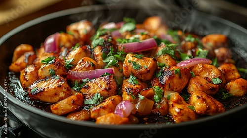 Savory Grilled Chicken Pan Fry with Onions and Herbs