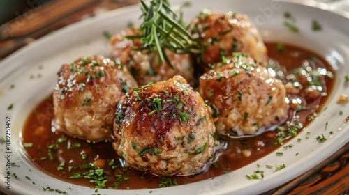 Savory Meatballs in Rich Sauce with Fresh Herbs