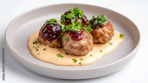 Savory Meatballs with Creamy Sauce and Berry Compote