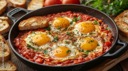 Savory Shakshuka with Fried Eggs in a Cast Iron Skillet