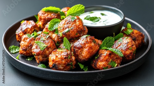 Savory spiced meatballs kitchen food photography dark background close-up culinary delight