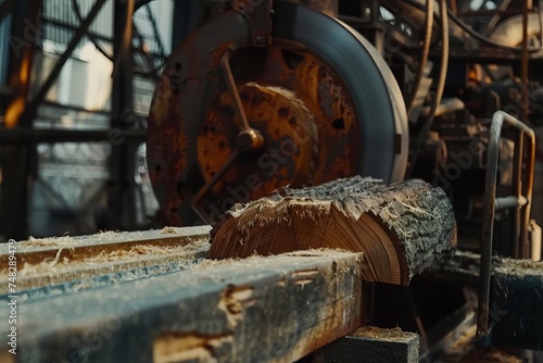 Sawmill with tree cut close-up, timber harvesting