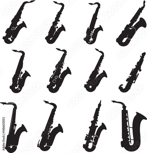 Saxophone Silhouettes: Black Musical Instrument Collection on White