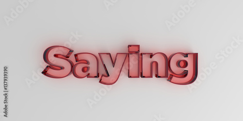 Saying - Red glass text on white background - 3D rendered royalty free stock image.