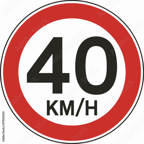 Scalable vector illustration of a 40 km/h speed limit traffic sign icon eps silhouette vector illustration white background