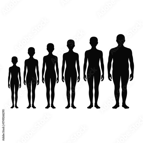 Scalable vector silhouette illustration of human body types from child to adult silhouette