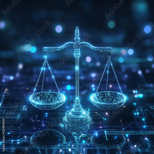 Scales of justice icon centered on a solid blue background, symbolizing fairness, law, balance, and legal authority ideal for legal services, court graphics, or justice-related digital content