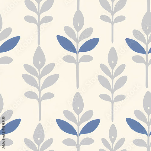 Scandinavian, botanical, seamless pattern, blue pastel leaves on light background. Design for wallpaper, fabric, textile, home decor, stationery, scrapbooking, decoupage