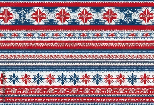 'scandinavian fabric winter knit textile nordic Vector embroidery colors border design blue Norwegian pattern red seamless cross ornament fashion background'