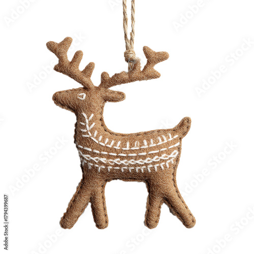 Scandinavian felt reindeer ornament, handmade Christmas style, isolated on transparent background