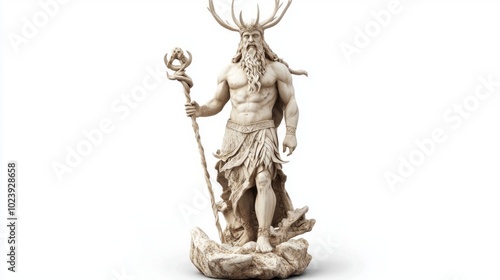 Scandinavian god Eir stands majestically holding a staff and exuding strength