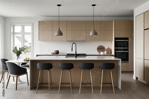 Scandinavian Minimalist Kitchen Design Featuring Elegant Breakfast Counter and Classic Cabinetry