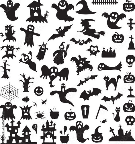 Scary Halloween Vector Collection Witches Ghosts Zombies Tomb Symbols Pack