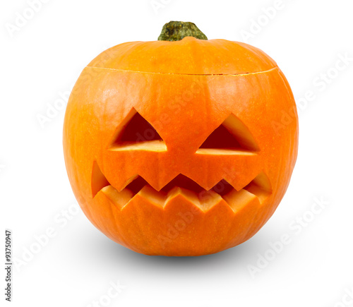 Scary Jack O Lantern halloween pumpkin isolated on white background