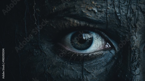 Scary wall background with sinister eyes, horror texture for background