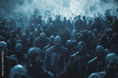 Scary zombie wandering in street with dramatic lighting on Halloween