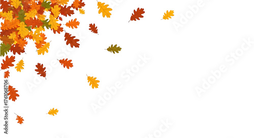 Scattered autumn oak leaves in various colors isolated on transparent background