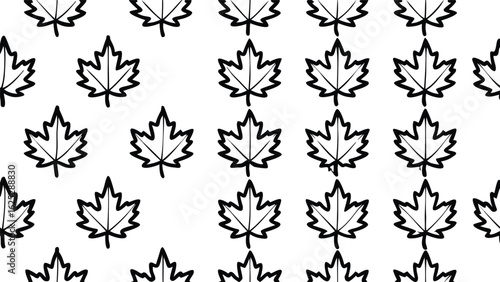 Scattered Black Outline Maple Leaves on White Background maple leaf