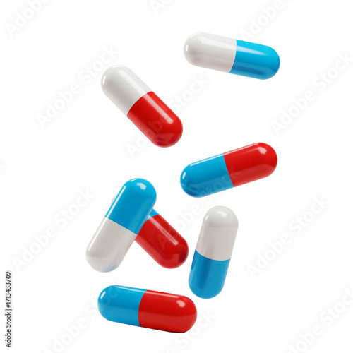 Scattered Blue Red Pills 3D Render for Medical Concept