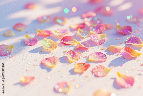 Scattered Colorful Glitter Petals Watercolor Paint Texture