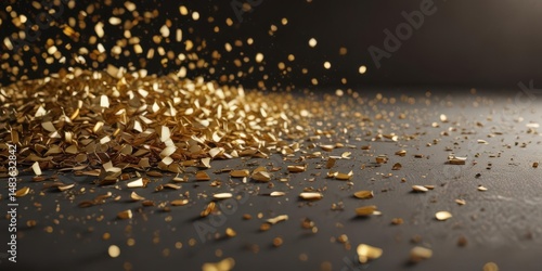Scattered gold confetti illuminated by a spotlight , confetti, sparkle, happiness
