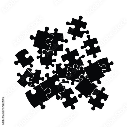 Scattered Jigsaw Puzzle Pieces Black Silhouette