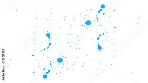 Scattered light blue ink droplets on a white background. Minimal abstract splatter.