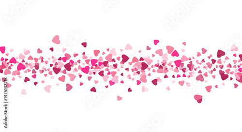 Scattered pink hearts pattern border ideal for romantic designs, Valentine's Day, and celebrations, vector illustration