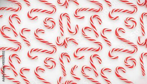 Scattered Red and White Striped Candy Canes on White