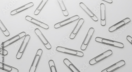 Scattered Silver Paperclips on White Background A Minimalist Office Supply Image