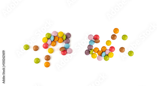 Scattered small candies isolated. Colorful dragees, multicolored glazed chocolate buttons