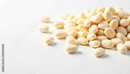 Scattered white beans on pristine white background, nature, rustic