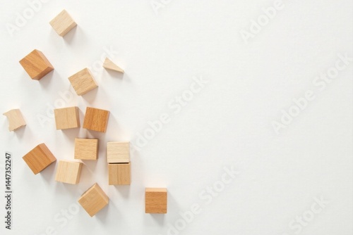 Scattered Wooden Cubes on a Plain White Background, Ideal for Various Design Projects and Concepts