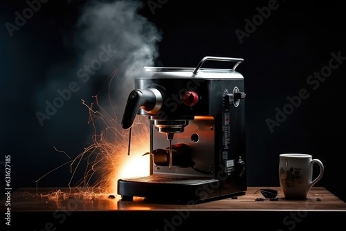 Scene of burnt kitchen appliances, including a kettle and a coffee maker