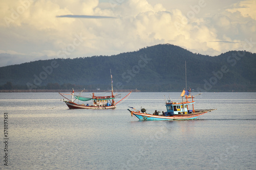 Scenery of the sea and fishing boats at koh pitak , chumphon province in Thailand. This is very popular for photographers and tourists.