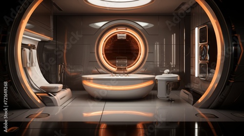 Scenes of a futuristic bathroom concept, with cutting-edge design elements and innovative technology for a forward-thinking look.