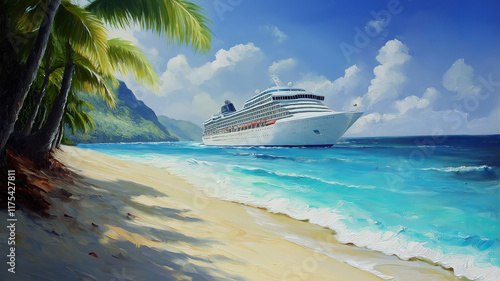 Scenic Caribbean cruise with palm trees and tropical beach paradise holiday views