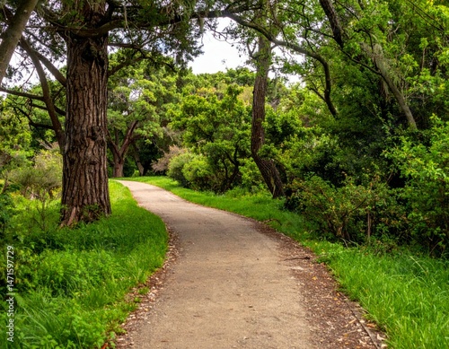 Scenic Curved Pathway Through Lush Green Forest Landscape