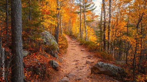 Scenic Hiking Trail Through Colorful Autumn Foliage