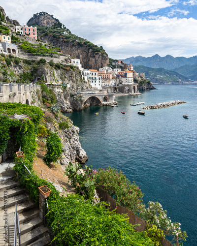 Scenic landscape of Amalfi Coast near the small town of Atrani, Campania region, Italy