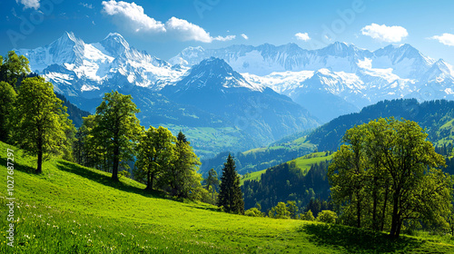 Scenic mountain landscape with lush greenery.