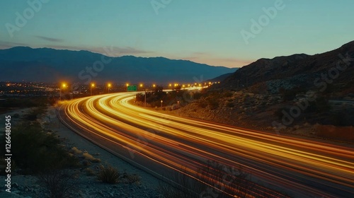 Scenic Night View of Light Trails on Desert Highway in Dusk Twilight